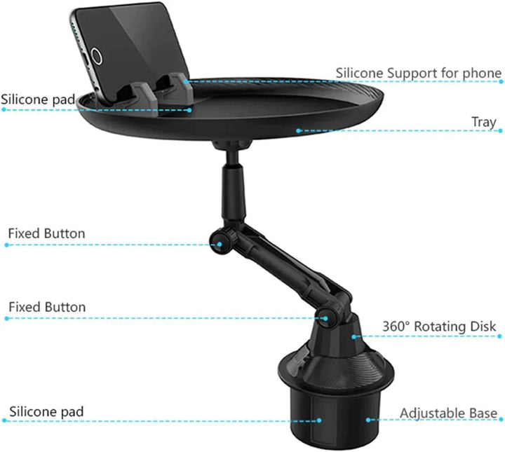 【Compatible with Most Car Models】: – This adjustable swivel tray is suitable for all most car models and can attach to any standard cup holder hole and locks securely in place. The jointed arms swivels from driver to passenger and may be raised or lowered at will.