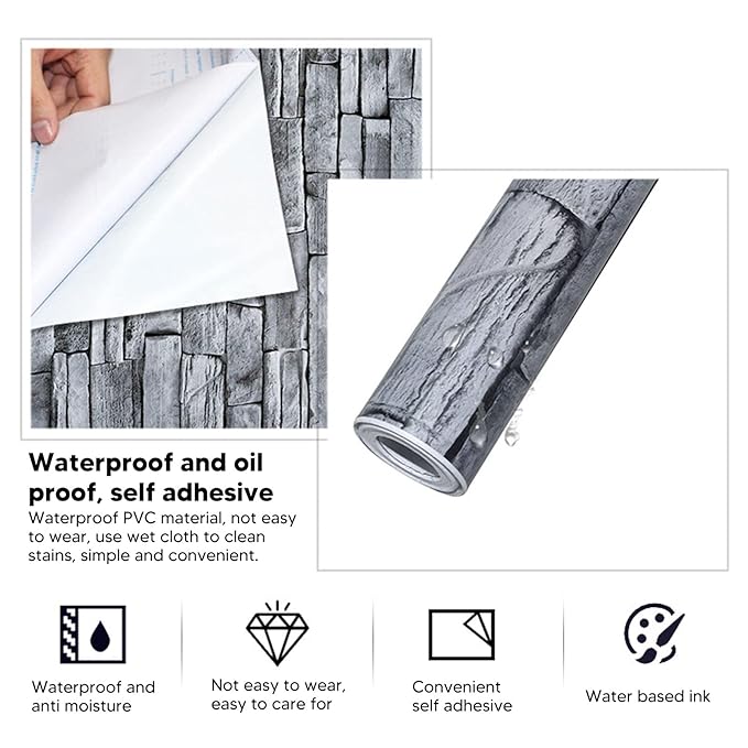 - PVC Material: This 3D brick wallpaper is made of premium PVC material, eco friendly, free from toxic, durable, waterproof, oil proof, anti dust, and easy to clean.