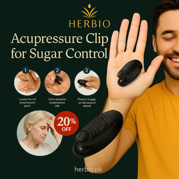 Herbio, a brand by Kyutee.pk, is dedicated to delivering natural, holistic wellness solutions. Our Sugar Control Acupressure Point Clip is crafted with care to support your health journey without the use of drugs or invasive treatments.